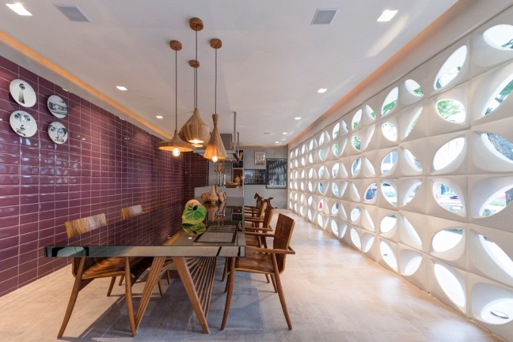 tanto como acabamento em construções comerciais, restaurantes, bares e em