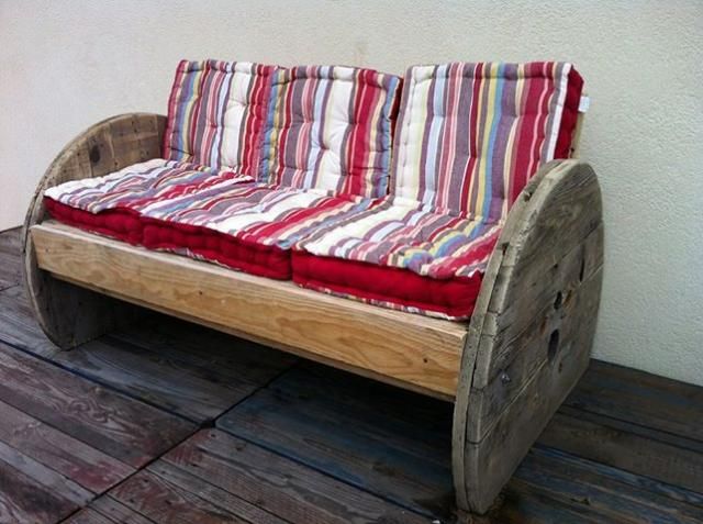 Que tal ter um móvel único? Além de criar algo diferente para o seu espaço, que dificilmente alguém terá um igual, os carretéis de madeira podem ser transformados facilmente em poltronas, sem acabamento, com uma arte diferente, ou até mesmo com os carimbos das empresas que utilizaram a bobina.